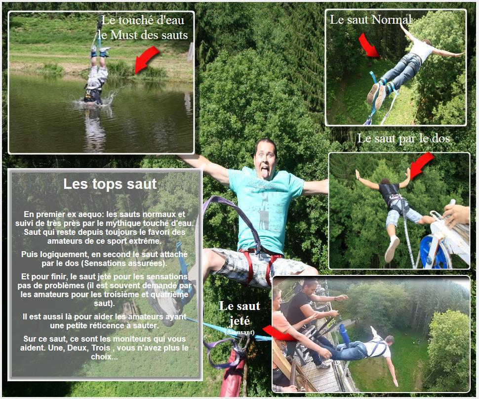 Sur ses sites Adrénaline Elastic essaie pour le spectacle et le plaisir des sauteurs de varier les différentes techniques de saut, il en existe une quinzaine pour y voir les différentes possibilités